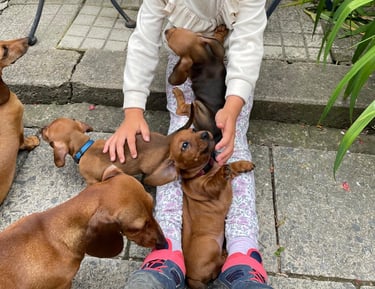 Naše jezevčíky pravidelně vystavujeme, cvičíme a dopřáváme jim dostatek lásky i volného pohybu v přírodě.